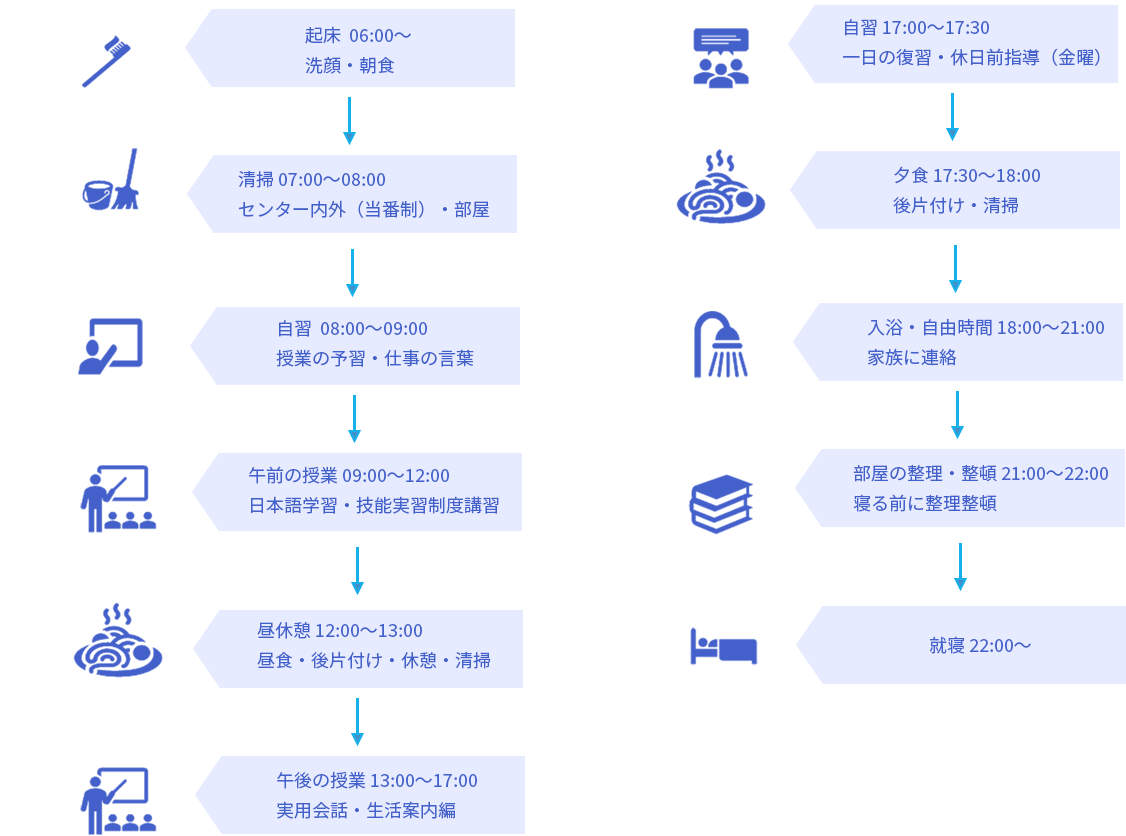 寮での集団生活を通して、日本の生活習慣、時間管理をしっかりと身に付けていきます。